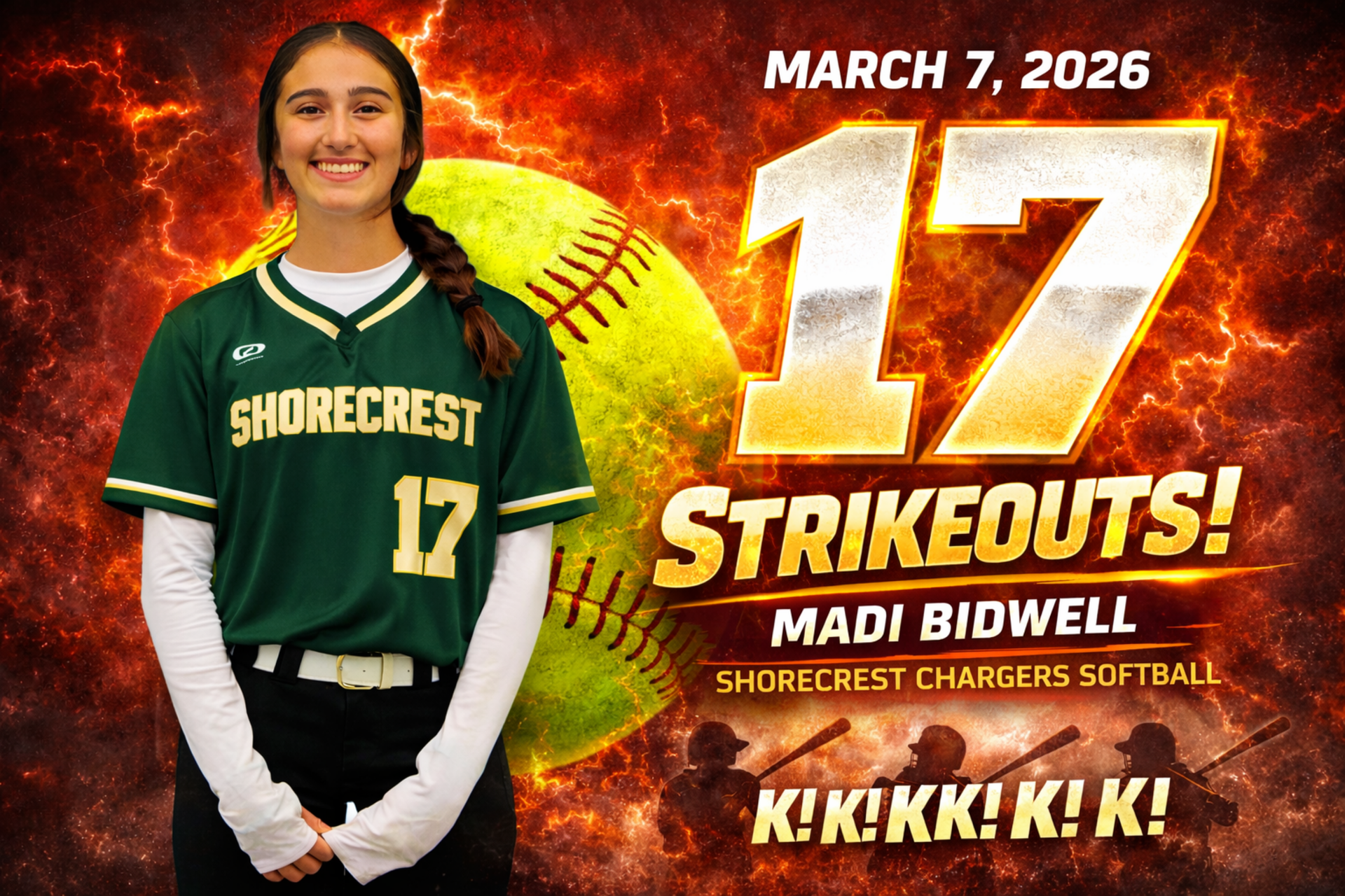 HARD WORK. That's the essence of Madi. Coming from a family of former college athletes, Madi's passion is unmatched. She trains seven days a week, combining pitching, fielding, swings, and conditioning.